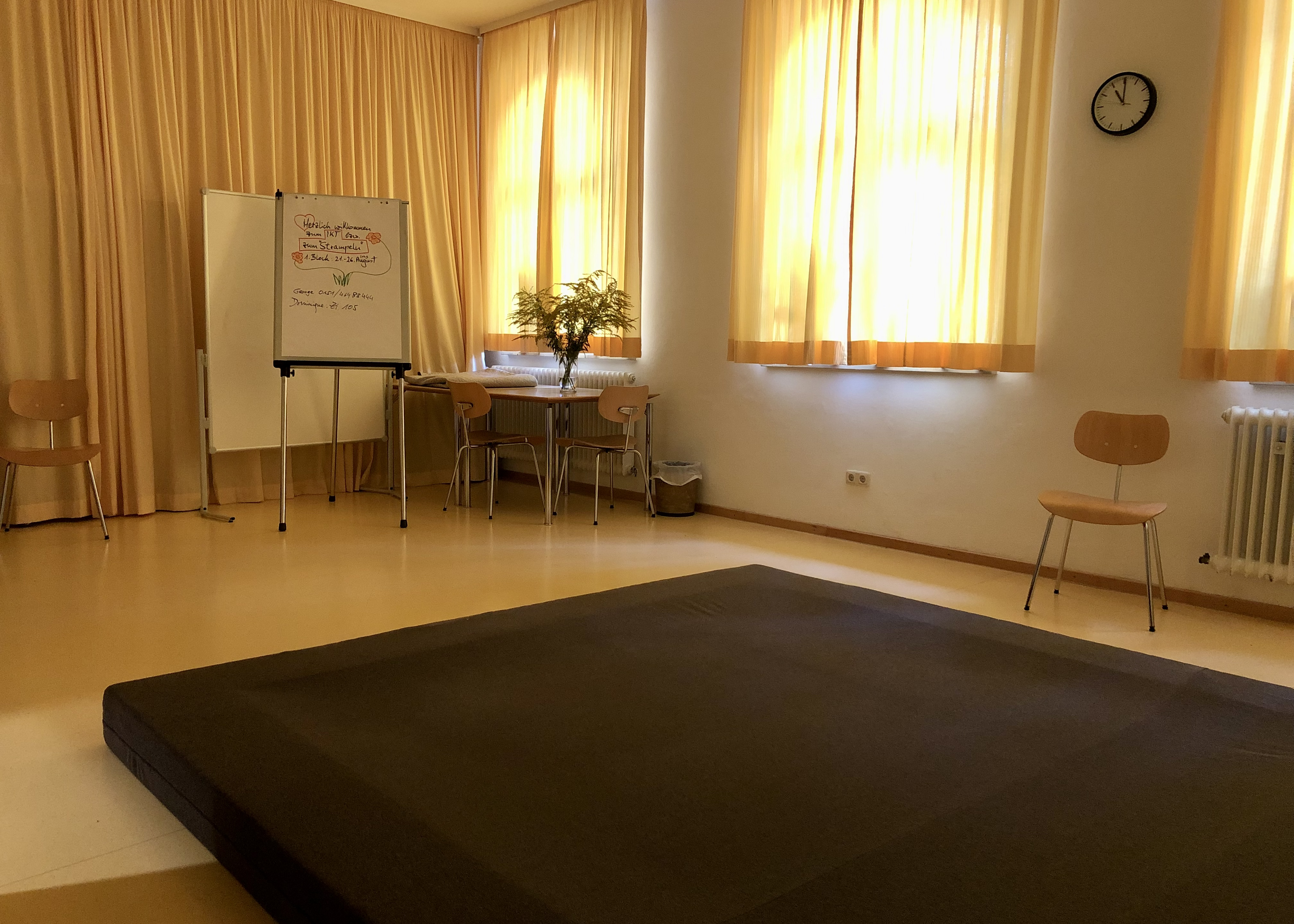 Die Bilder zeigen den IKT-Raum mit der großen Matte und meine Assistenten.